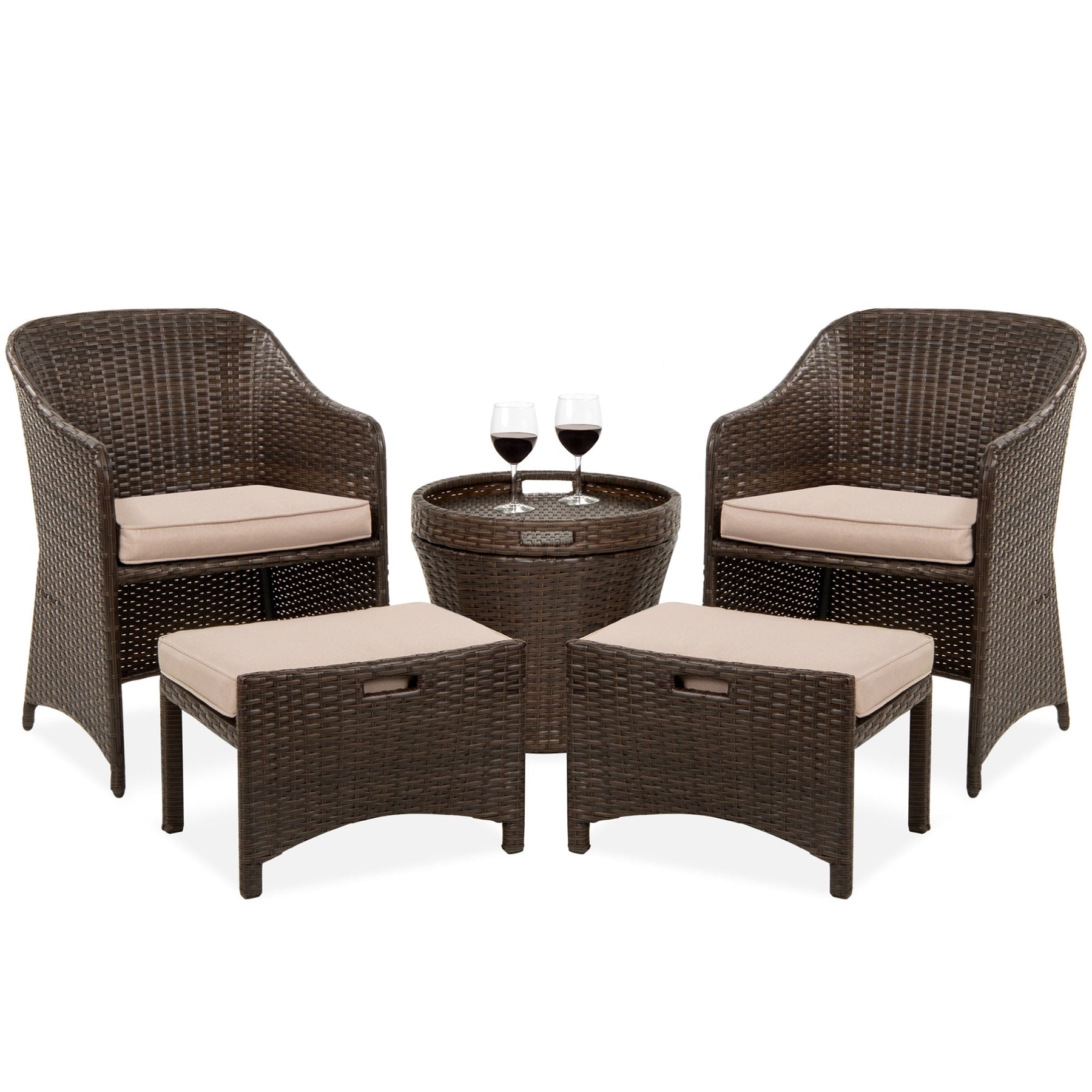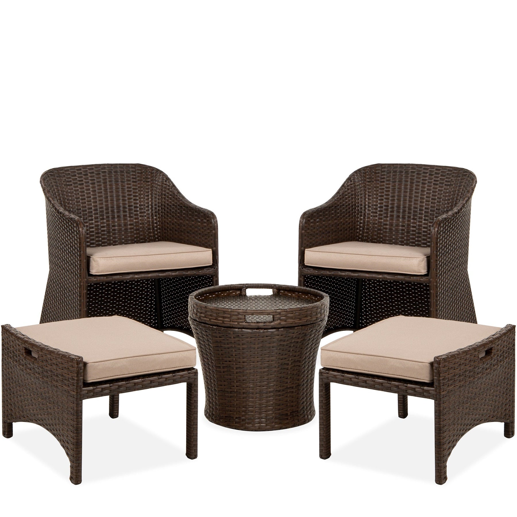 Arokya Outdoor Patio Seating Set 2 Chairs 2 Ottoman and Table Set (Brown)