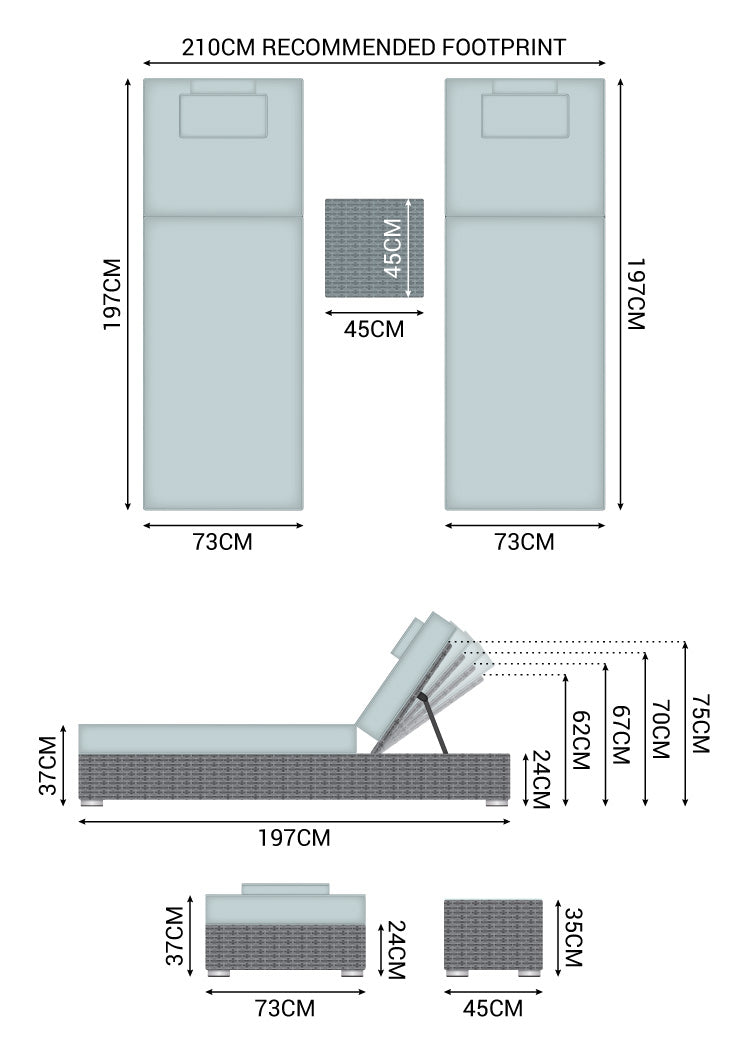 Lounger : Width 28 inch, Length 77 inch, Height 17 inch