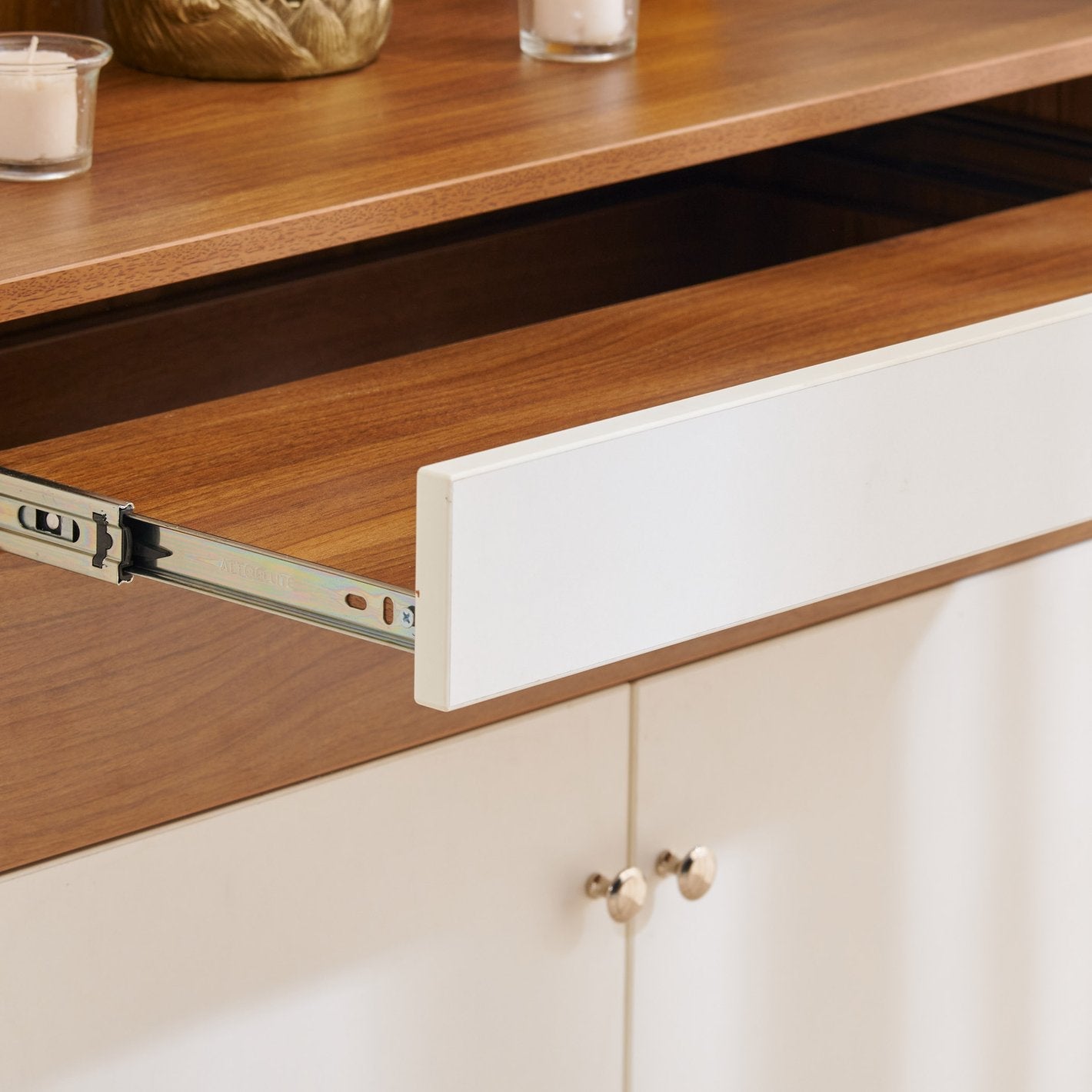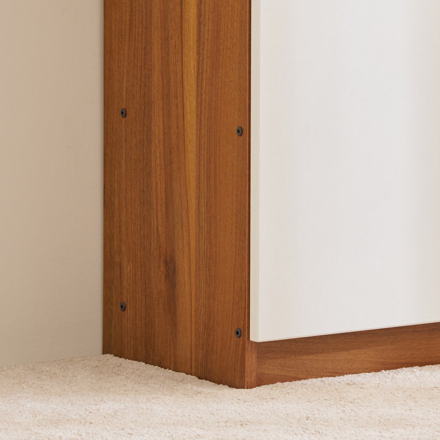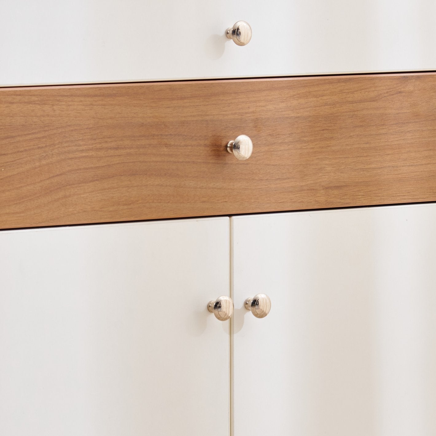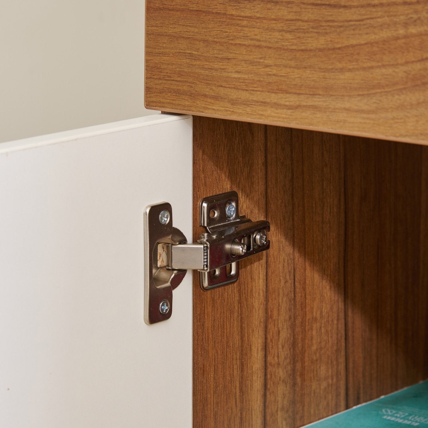 The spacious altar area is perfect for placing idols, candles, and essential puja items, while the sleek drawer and cabinet provide ample storage to keep your worship essentials organized and within easy reach. The combination of warm wood tones with elegant white accents lends a sophisticated and harmonious look that complements any modern or traditional décor.