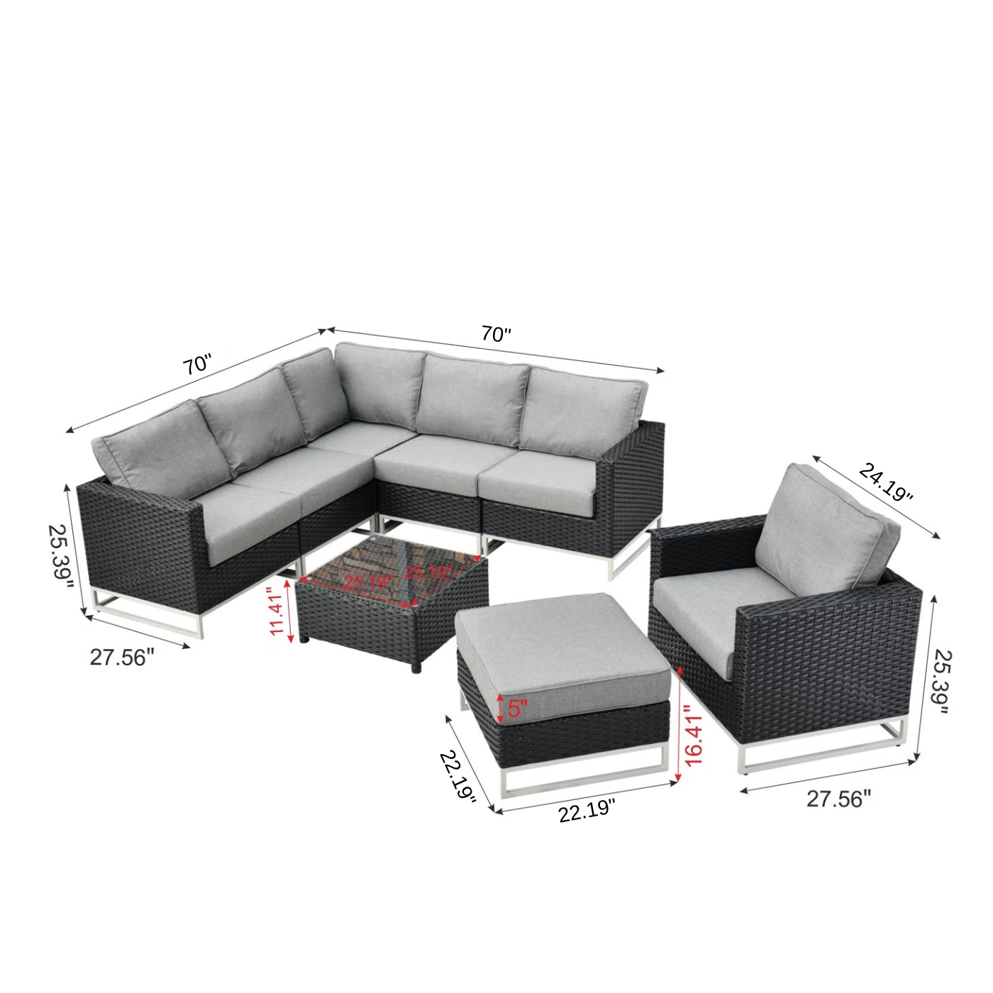 Slue Outdoor Sofa Set 5 Seater , Single seater With Ottoman and 1 Center Table Set (Black)