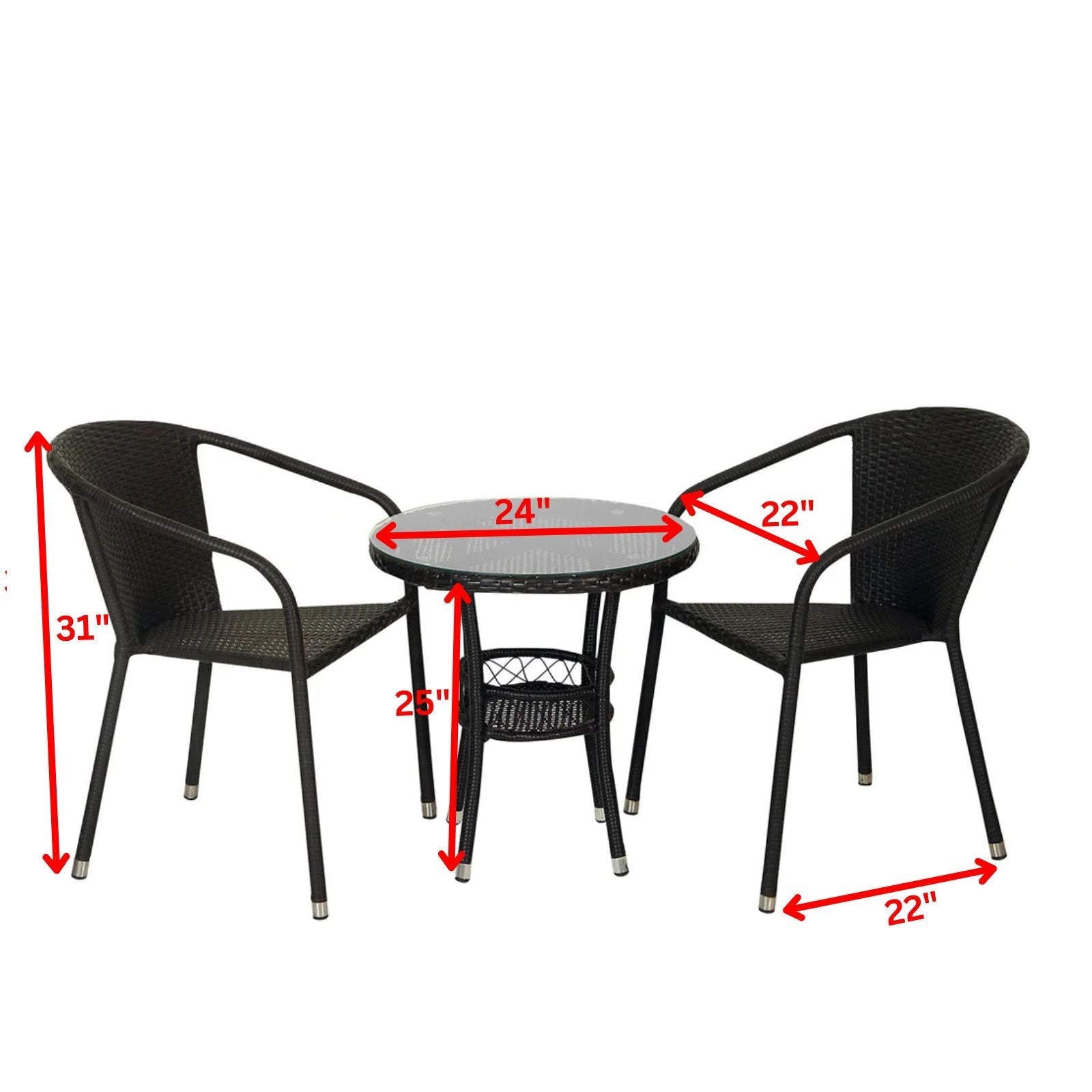 Chair: Height 31 inch x Width 22 inch x Depth 22 inch