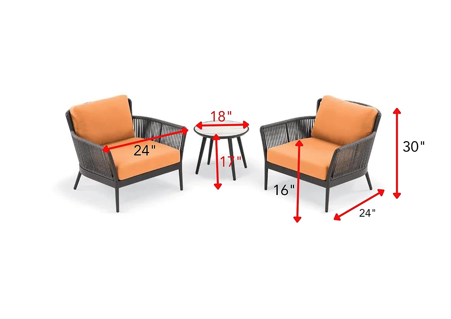 Tito Outdoor Patio Seating Set 2 Chairs and 1 Table Set (ORANGE) Braided & Rope