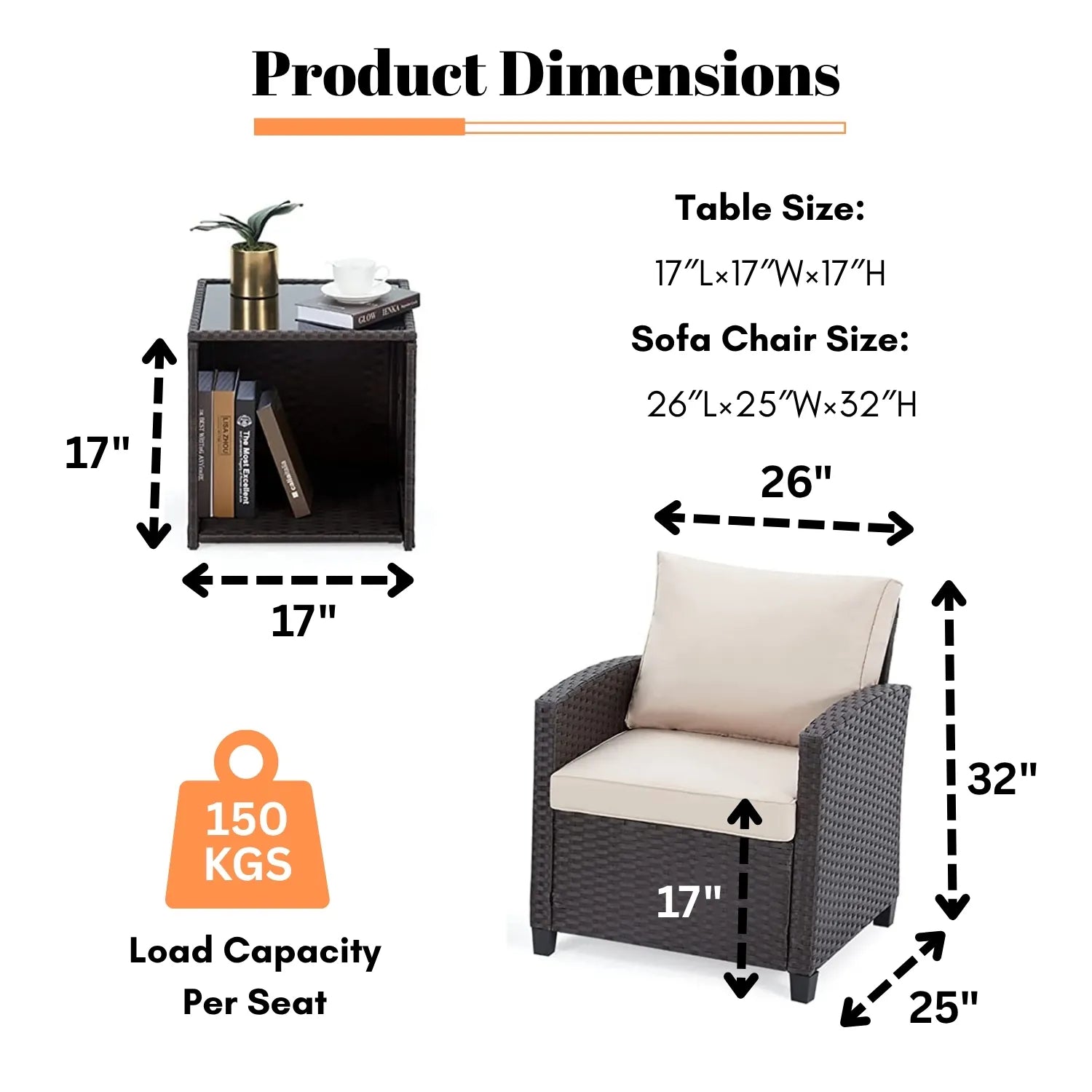 Xiao 3-Piece Outdoor Rattan Wicker Patio Set