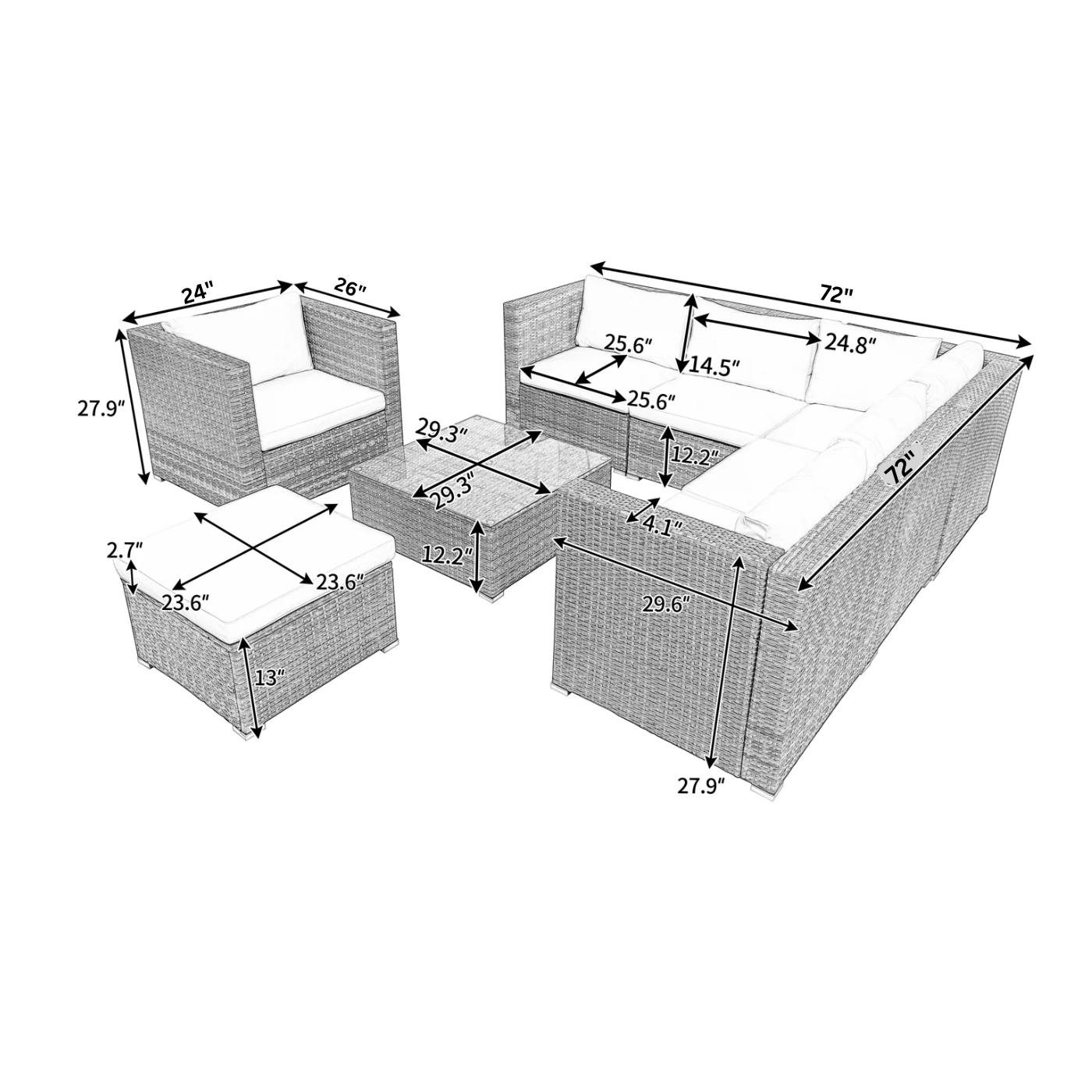 Six seater: Width 72 inch, D 26 inch, Height 27.9 inch